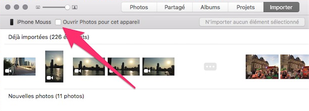 À chaque fois que l’on branche un terminal iOS ou une carte SD à son Mac, l’application Photos se lance afin de permettre de transférer du contenu. Pour empêcher cette ouverture automatique, il suffit de décocher la case « Ouvrir Photos pour cet appareil » dans la section Importer.