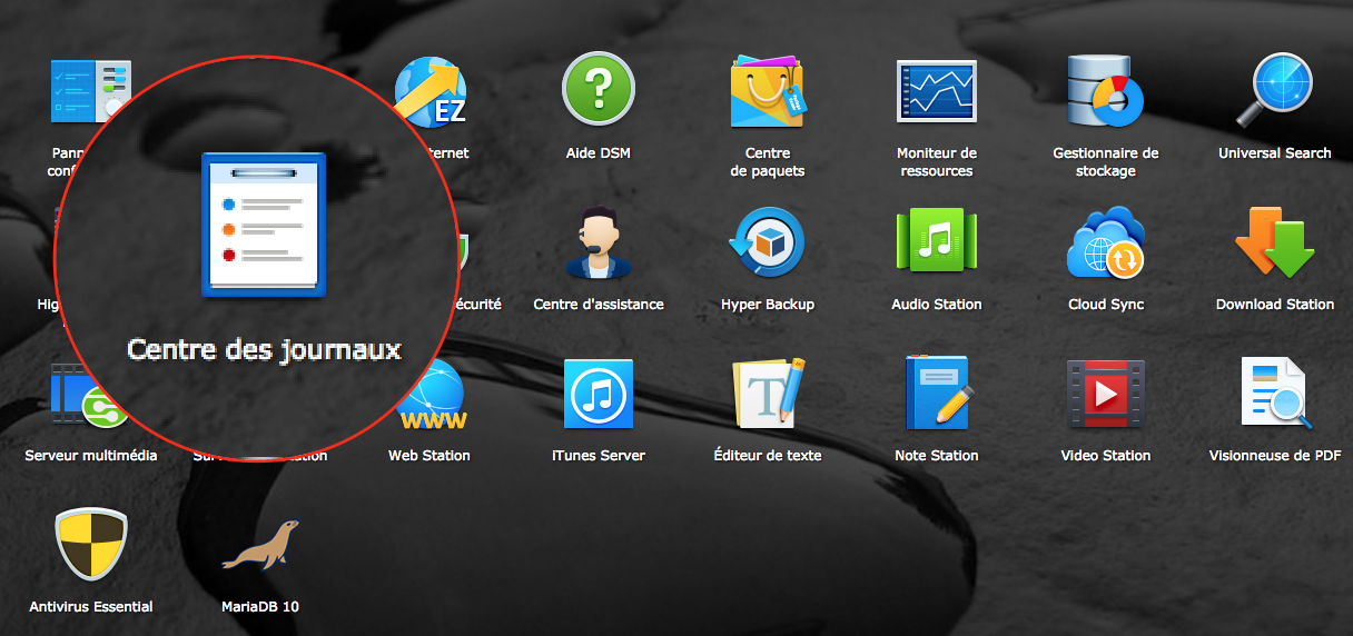 Il est conseillé d’installer le paquet de centralisation des journaux (Centre des Journaux) pour plus facilement accéder à l’ensemble des LOGs générés par le NAS.