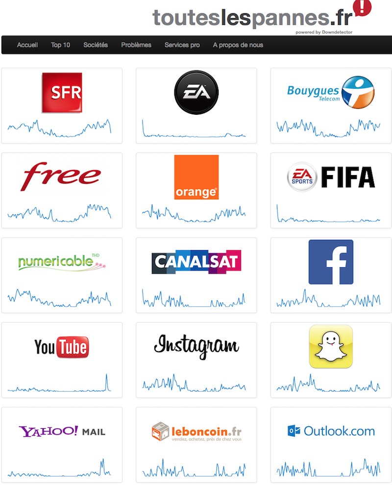 - Toutes les Pannes regroupe les principaux services en ligne de FB à Netflix en passant Hubic et d’autres